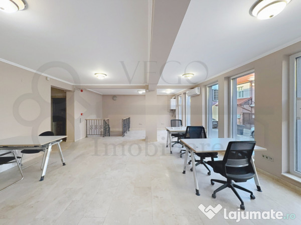 Spațiul se desfășoară pe o suprafață utilă de 85 mp, se oferă spre închiriere complet finisat, conform fotografiilor de prezentare, în rândul dotărilor menționăm ferestrele termoizolante cu tâmplărie PVC, pardoseală placată cu travertin, pereți cu lavabilă, iar confortul termic este asigurat pe tot parcursul anului de centrala termică individuală și aparatul de aer codiționat.
