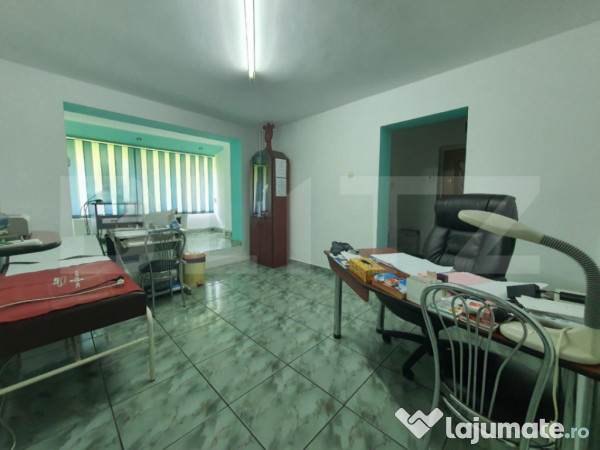 Spațiul are o suprafață utilă de 48 mp, compartimentată eficient în două încăperi, hol, baie și spațiu de depozitare, fiind ideal pentru cabinet medical, stomatologic, salon, birou, firmă de servicii sau alte activități profesionale.