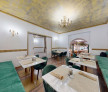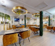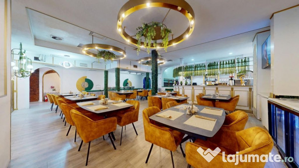 In prezent, proprietatea gazduieste un restaurant si o cofetarie de lux, recent amenajate si complet echipate, incluzand: mese si scaune, vitrine frigorifice, bar, camera frigorifica spatioasa, bucatarie profesionala complet echipata, cuptor pe jar, spatii depozitare, terasa, separeuri.