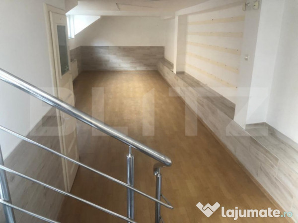 Blitz ofera spre inchiriere spatiu comercial luminos cu vad foarte bun de 44mp la demisol lungul Bulevardul Revolutiei. Dispune de o baie de serviciu si un spatiu „central” cu posibilitatea de a fi compartimentat. Pretabil pentru orice tip de salon, frizerie sau birouri.