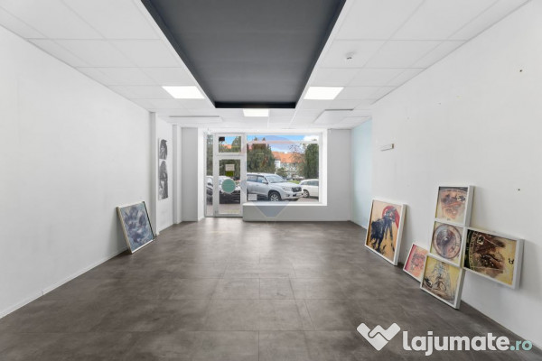 Spațiul dispune de o suprafață utilă de 57 mp, fiind compus din sală de vânzare cu vitrină, spațiu de depozitare și grup sanitar.