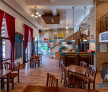 La parter se află barul și bucătăria complet utilată, împreună cu spațiul de servire mobilat cu mese și scaune. Totul este funcțional și pregătit pentru desfășurarea imediată a activității.