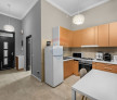 bucatarie separata cu loc de luat masa- complet utilata: frigider, microunde, cuptor incorporat cu plita.