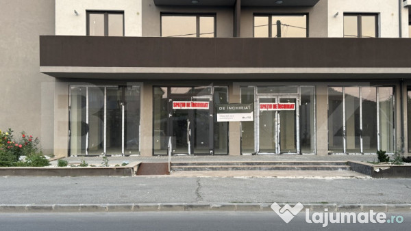 Spațiul se predă semifinisat (cum apare în poze) cu perioadă de grație pentru amenajare, beneficiază de toate utilitățile și de intrări separate în față și în spate. Imobilul se prezintă sub forma unui open space cu spațiu pentru grupul sanitar, putând fi ușor de compartimentat, cu posibilitatea de parcare în față și un bun vad comercial, atât pietonal, cât și auto, cu vitrine pe toată fațada (peste 10 m).
