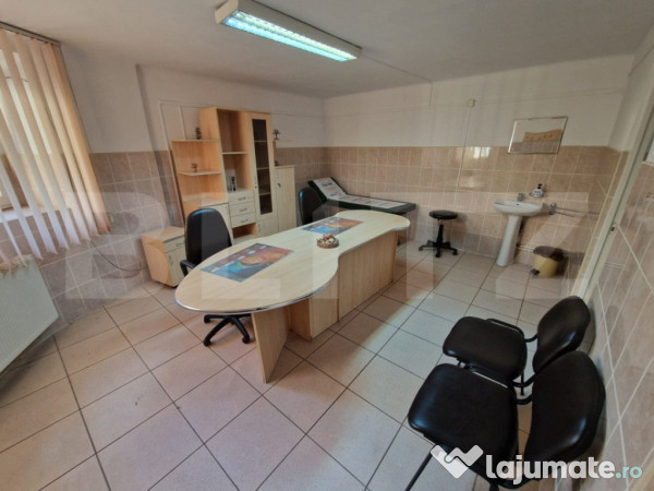 Amenajat anterior ca si cabinet cardiologic, spațiul este perfect echipat pentru a continua activități medicale, cum ar fi cabinete de cardiologie, stomatologie sau medici de familie, dar poate fi, de asemenea, transformat cu ușurință în birouri moderne sau sediu de firmă. Dublul său potențial de utilizare îl face o alegere remarcabilă pentru profesioniști care caută un mediu elegant și funcțional.