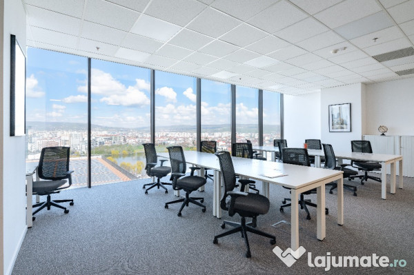 Această ofertă include 45 mp de spațiu de birou privat, plus acces la zonele comune.