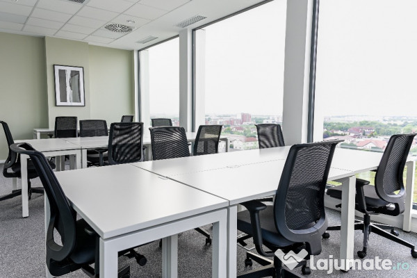 Această ofertă include 45 mp de spațiu de birou privat, plus acces la zonele comune.