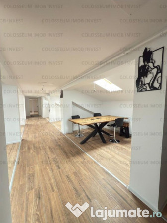 Spatiu de inchiriat 148 mp, 3 bai, in zona Tractorul - Vivamus, suprafata utila 148 mp, aflat la mansarda unui bloc cu 6 nivele,cu o priveliste superba spre tampa, pretabil pentru mai multe domenii de activitate.
