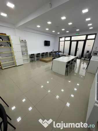 Spatiul este situat la parterul unui bloc cu 3 etaje, vizavi de stația de autobuz, dispune de toate utilitățile contorizate individual (canalizare, apă curentă, gaze, curent), centrală termică + calorifere, alarmă, camere supraveghere video.