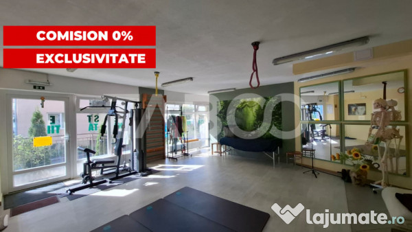Spatiu comercial de inchiriat, amenajat pentru activitati de kinetoterapie si sport de recuperare, dotat cu baie si vestiar, aflat in zona Turnisor, Sibiu, cartier Alma.