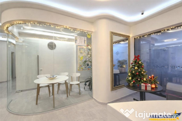 Cu o suprafata utila de 196 mp, este conceput si compartimentat special pentru activitati medicale, fiind ideal pentru cabinet stomatologic, clinica medicala ambulatorie, centru de recoltare analize sau concept medical integrat. Functionalitatea este completata de dotari tehnice premium: racordare la reteaua urbana de apa si canalizare, sistem generalizat de prefiltrare a apei in trei etape, centrala termica proprie pe gaz, incalzire in pardoseala, sistem de ventilatie cu recuperare de caldura si filtrare a aerului, precum si aer conditionat.
