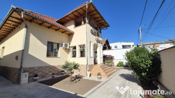 Terenul generos de aproximativ 300 mp care înconjoară casa oferă nu doar intimitate, ci și oportunități variate de amenajare – fie că este vorba de o grădină cochetă pentru clienți sau de un spațiu exterior de relaxare pentru angajați.