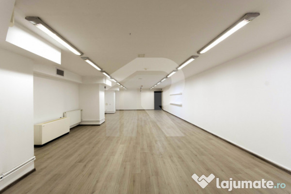 Spațiul se află la subsol, dispune de 100 mp utili si este compartimentat conform schitei atasate.