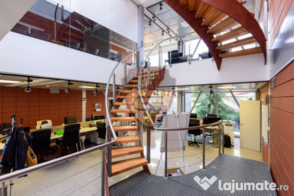 In configurația actuala, spațiul este de natura sa satisfacă cerințele unei firme cu 20-30 de angajați (ideal pentru birouri, reprezentanta, etc), având in componenta birouri manageriale, birouri comune pentru angajați, recepție, 2 săli de ședințe/protocol, anexe administrative, arhiva, sala de servit masa, grupuri sanitare comune, etc.