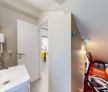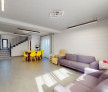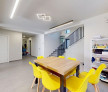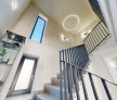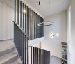 Designul îmbină elemente minimaliste și elegante – riflaje și balustrade metalice, placări în tonuri naturale, uși Benati albe, corpuri de iluminat LED.