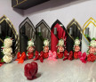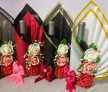 Oferim sticle de vin Merlot, Busuioacă de Bohotin, Fetească Regală și Tămâioasă Românească, disponibile în variante dulce, demidulce și sec. Toate sunt frumos ambalate cu flori și fundițe, pregătite să fie dăruite. ✨