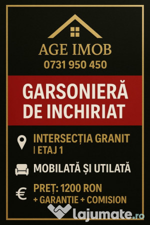 Granit , garsonieră 20 mp mobilată , utilată , baie cu wc si duș, aragaz frigider , mașină de spălată, liberă , mutare imediată , preț 1200 ron.