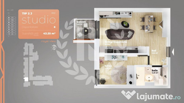 Arhitectura deosebită pune la dispoziție un modul cu 103 apartmente de tip Garsoniere, Studio, apartamente cu 2 și 3 camere și duplexuri, într-un imobil nou cu regim de înălțime de P+12 etaje.