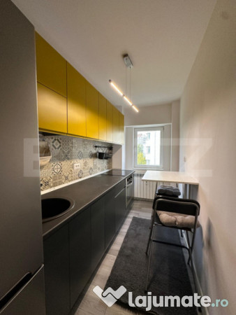 • Bucătărie complet utilată: frigider, plită și cuptor electric, mașină de spălat
