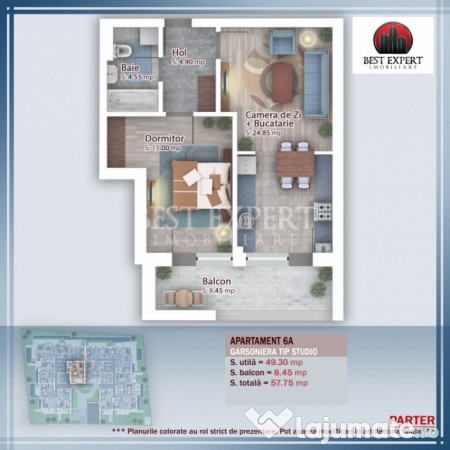 Suprafata utila - 49.40 mp utili +8.45 mp balcon, total 57.85 mp utili