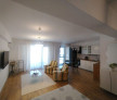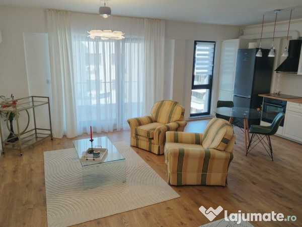 Se inchiriaza complet mobilat cu mobila Mobexpert si bucatarie open space echipata in totalitate, inclusiv masina de vase incorporata si masina de spalat rufe cu uscator.