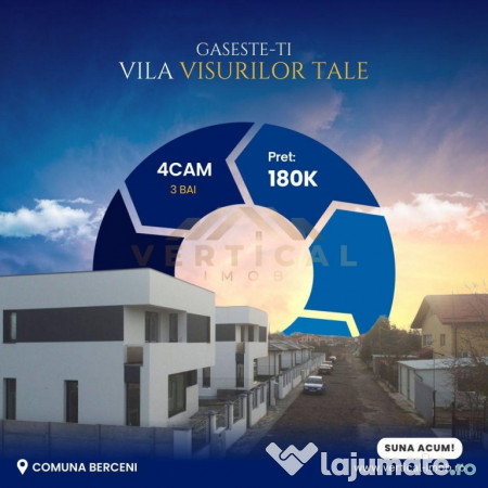 Tocmai am vandut proprietatea din anunt! Langa ea, deja este la stagiul ,,La rosu,, urmatoarea proprietate! La acest moment puteti beneficia de discountul de 10.000Euro pana la final de luna! Iar urmatoarele case vor venii pregatite pentru semineu! (La alegerea clientului)