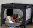 Folosit foarte putin, in stare foarte buna. Echipat cu un covoras, usa cu inchidere si manere pentru a invata sa stea in picioare, in forma de patrat Dimensiuni interne: 75x75x60 cm Dimensiuni dupa pliere: 20x75 cm