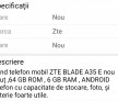 Vând telefon mobil ZTE BLADE A35 ANDROID nou,cutia originală ,cablu de alimentare.