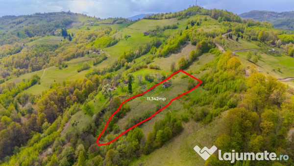 - Teren 2: Suprafață de 11.342 mp, amplasat imediat sub primul teren, delimitat de un al doilea drum de acces, ușor accesibil. Acest teren are o deschidere de aproximativ 83 m și include o construcție de aproximativ 65 mp (o fostă șură transformată în locuință), neîntabulată, dar locuibilă. Locuința are regim parter, baia este dotată cu încălzire în pardoseală, alimentată cu apă, curent electric și dispune de fosă septică.