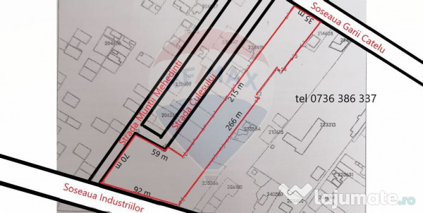 Terenul in suprafata de 11923 mp si deschidere la 3 strazi, Soseaua Industriilor, str Muntii Mehedinti si Soseaua Garii Catelu:92m+70m+35m,. Utilitatile sunt la limita de proprietate, respectiv strazile care marginesc terenul: in strada Culesului, strada Muntii Mehedinti si Soseaua Garii Catelu.Se preteaza pentru dezvoltarea unui ansamblu rezidential de case P+1+M.