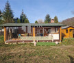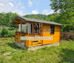 Cabanuta este construita din lambriu de 28 mm cu dimensiunile 4,5 x 3 m,