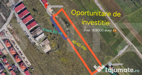 Terenul are o suprafata de 4642 mp si dispune de 2 fronturi, unul de 18 m si unul de 80 m.