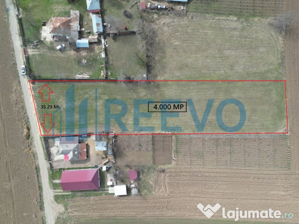 Terenul este în totalitate intravilan, cu o suprafață de 4.000 MP iar deschiderea este de 35.29 M. Se afla la 50 m de drumul asfaltat.