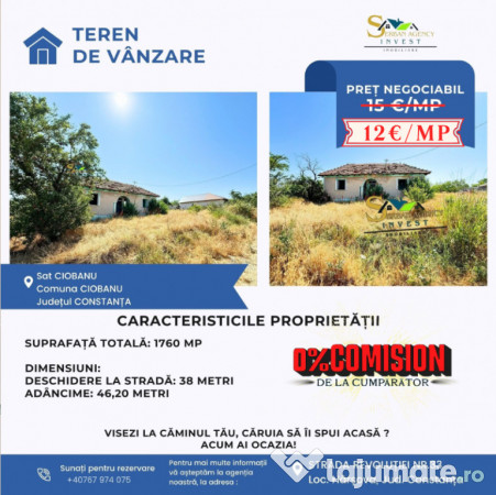 Teren amplasat în sat Ciobanu, potrivit pentru construcție locuință individuală, fermă sau investiție pe termen lung.