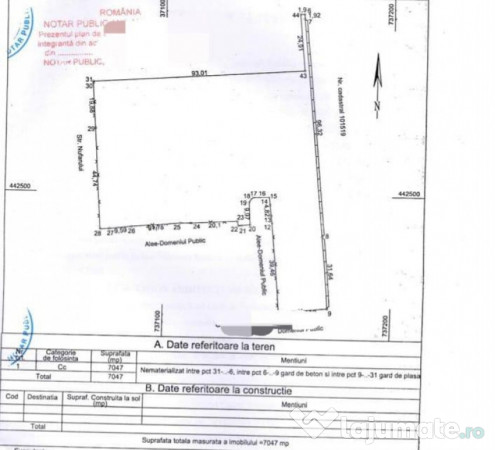 - terenul are o suprafata totatla de 7047mp