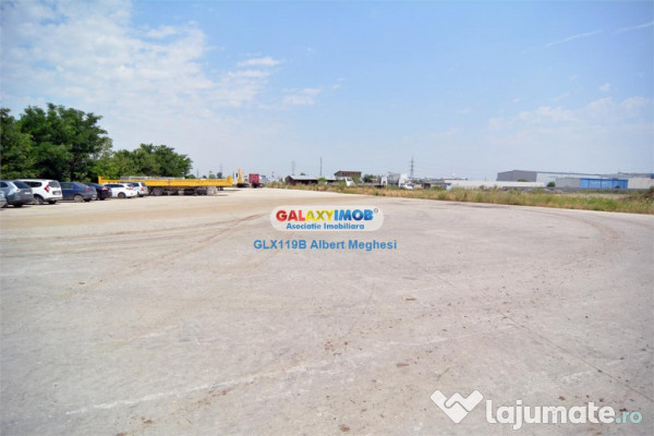 Va propun spre vanzare un teren cu suprafata de 17.500 mp din care 4300 mp sunt platforma betonata, imprejmuit cu gard din beton.