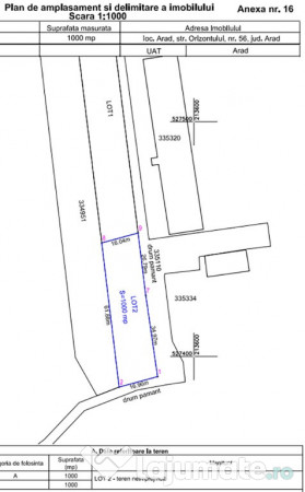 De vânzare teren intravilan cu suprafața de 1.000 mp, situat într-o zonă liniștită, ideal pentru construcții rezidențiale sau investiție.