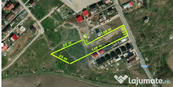 Terenul intravilan cu suprafata de 5100 mp este imprejmuit cu gard, are o deschidere de 27 m la strada Unirii, are toate utilitatile la limita de proprietate si se preteaza pentru dezvoltarea unui ansamblu rezidential sau retail. Exista posibilitatea de a crea un al doilea acces la teren dinspre nord-vest, latura opusa strazii Unirii.