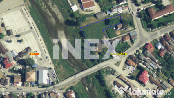 D: P84 Teren intravilan situat ultracentral în Domnești, chiar vis-a-vis de liceu, cu deschidere directă către Râul Doamnei. Poziționat excelent, la doar 2 minute de mers pe jos de Primărie și Piața Centrală.