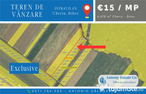 Va propunem spre vanzare in exclusivitate, un teren intravilan, aflat intr-o locatie de maxim interes in localitatea Cheriu, Bihor.