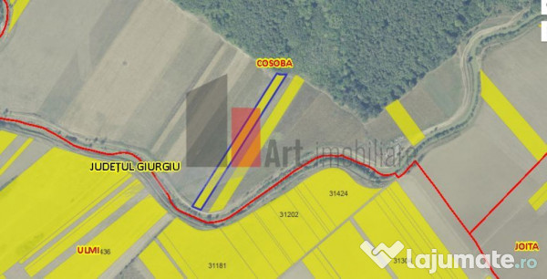 Teren Intravilan construibil de vanzare langa padure, Com Cosoba, Jud Giurgiu aflat la 15 min de mers cu masina pana la intrarea in Bucuresti, 2 Km pana la A1 si 1 km pana la A0 ce se construieste acum, reper Padurea Joita, avand o suprafata de 6100 mp si deschiderea de 21 ml la 1 strada si deschidere 20 ml la raul Ciorogarla  Pretul este negociabil.