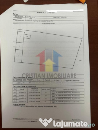 *Certificat Urbanism POT= 40% ; CUT=1,2 ; maxim P 2