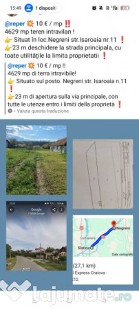 De vânzare teren intravilan in sat. Negreni, Scornicești, Jud. Olt