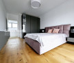 Etajul 1 dispune de un dormitor matrimonial foarte spatios cu baie proprie, dressing si balcon .