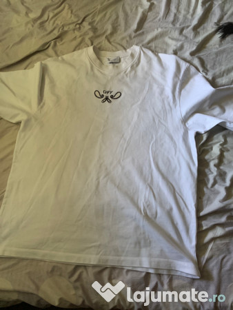 Tricou bărbați Off White cu broderie mică pe față și broderie mare pe spate