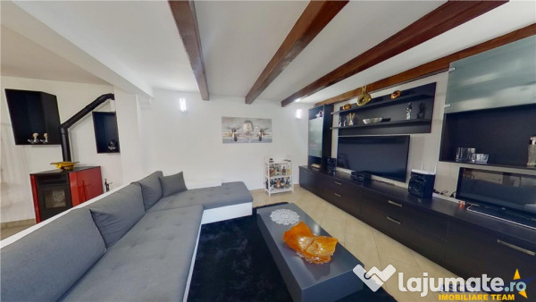 - living generos cu antreu, frumos armonizat de plante naturale si grinzi de lemn pe tavan, baie cu cabia de dus, foarte luminoasa, bucatarie cu spatiu de dinning si camara, facand trecerea catre o frumoasa terasa acoperita, un colt de rai, unde proprietarii si-au amenajat un spatiu relaxant intre flori naturale, pentru o cafea si o limonada rece cu prietenii sau cu familia
