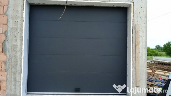 Vând usa de garaj sectionala L 3000 si H 2500, culoare gri antracit RAL 7016, model liss ( fin ), cu panouri cu grosime de 40 mm.