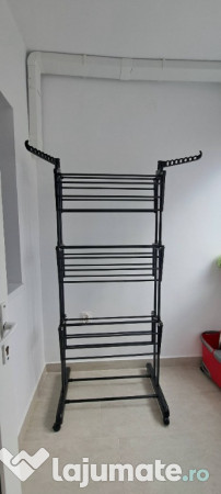 Uscator de rufe pliabil cu suport de umerase, Herzberg, cu roti, negru