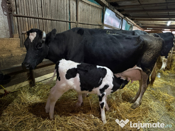 De vanzare vaca Holstein 25L de lapte pe zi , cu vitel 6 saptamani.