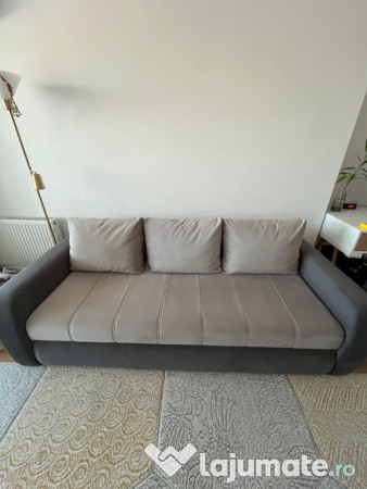 Canapeaua are ladă de depozitare.